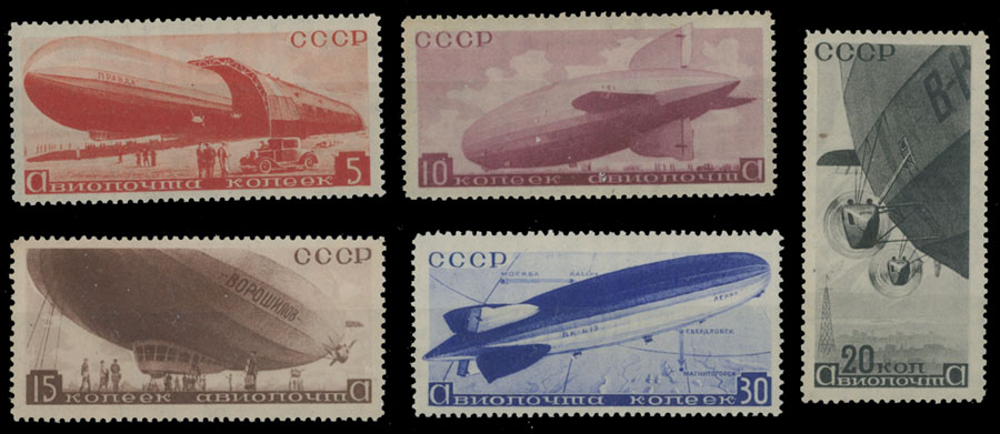 1934, Airships, 5k-30k, complete set of five, flawless condition, full OG, NH, VF, C.v. $1,020, Est. $500-$600 , Scott #C53-57