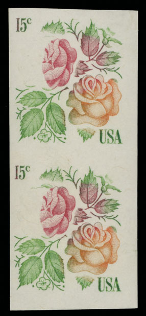 1978, Roses 15c multicolored, vertical imperforate pair, full OG, NH, VF, C.v. $450, Est. $200-$250 , Scott #1737b