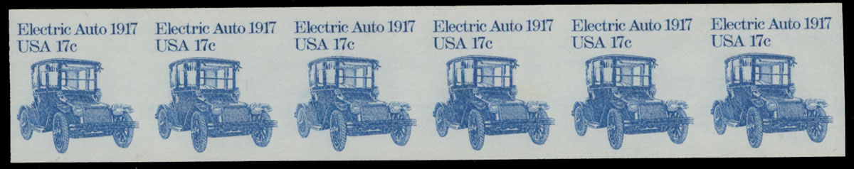 1985, Electric Auto, 17c ultramarine, coil stamp in horizontal imperforate strip of six, full OG, NH, VF, C.v. $390 as three pairs, Est. $150-$180 , Scott #1906b