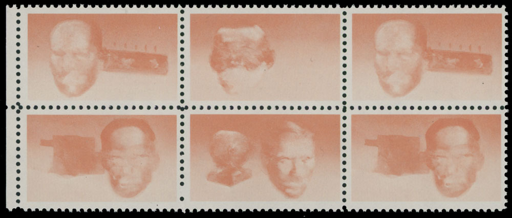 1983, American Inventors, (20c) x4 multicolored, left margin se-tenant block of six, including two of No.2056 and 2058, all with black engraved color omitted, full OG, NH, VF, C.v. $275 for block of four, Est. $150-$200 , Scott #2058b