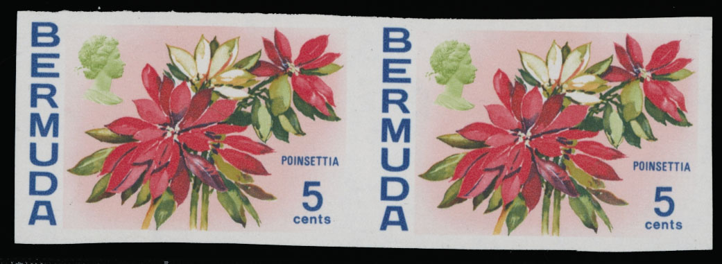 1970-75, Poinsettia, 5c multicolored, horizontal imperforate pair with nice margins all around, full OG, NH, VF, C.v. $1,500, Est. $500-$600 , Scott #259a