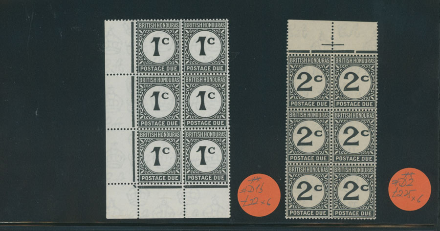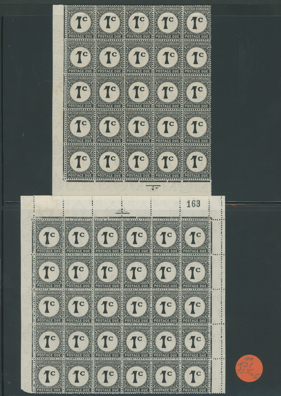 1923-65, five items, 3 blocks of 1c (25, 30 and 6) and 2c in block of 6, all on ordinary watermarked Multiple Script CA paper, plus 4c in pane of 60 with watermark Multiple Block CA, full OG, generally NH, VF, SG #D1-2, D5, C.v. £690++, Est. $200-$250, Scott #J1-2, J1B, J5