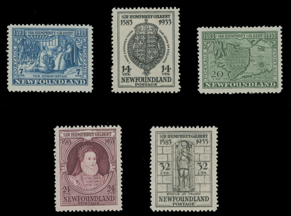 1933, Arms, Map, Queen Elizabeth I, 7c, 14c, 20c, 24c and 32c, set of five with perforation L14, full OG, NH, VF, Unitrade C.v. CAD$302, Est. $100-$120 , Scott #217a/ 25a