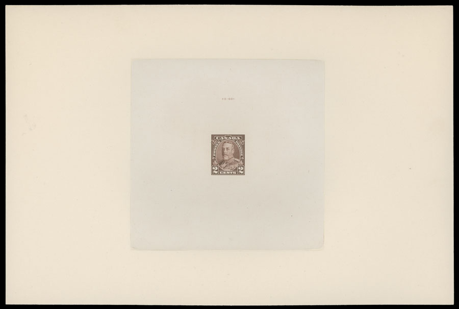 1935, large die proof of 2c in brown on India paper, mounted on sunken card, No. XG-601 at the top, proof size 98x96mm, card size 230x153mm, flawless condition, VF and scarce, Minuse and Pratt #218P1, Walsh NSSC #182dp2, C.v. US$900, Est. $500-$600, Scott #218