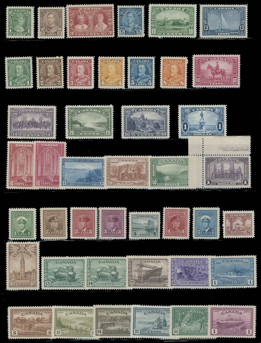 1935 -46, Silver Jubilee, Pictorial issues of 1935 and 1938, War issue of 1943-43 and Peace issue of 1946, the total is 43 stamps, full OG, NH, VF, Unitrade C.v. CAD$1,030, Est. $300-$400 , Scott #211/73