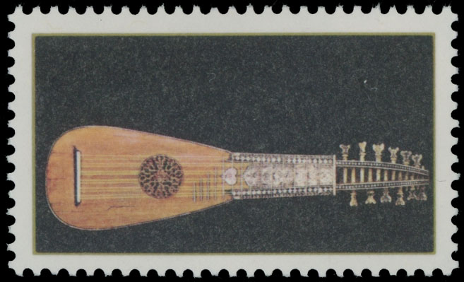 1981, Antique Mandora, (17c) multicolored, a single printed on gum side with omitted gold inscription and tagging, full OG, NH, VF and rare, only a half of 200 existing examples are remaining in sound condition, Unitrade #878i, C.v. CAD$2,000, Est. $500-$600, Scott #878 var