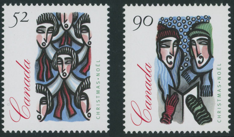 1994, Christmas, 52c and 90c, two stamps of unissued denominations due to not approved rate increase, full OG, NH, VF, Unitrade #1534ii-35ii, C.v. CAD$800, Est. $200-$250 , Scott #1533-34 fn