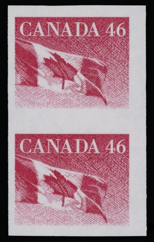 1998, Flag, 46c red, coil stamp in vertical imperforate pair, full OG, NH, VF, C.v. $150, Unitrade C.v. CAD $225, Est. $100-$120 , Scott #1695a