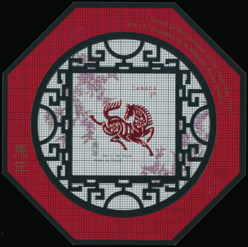 2002, Year of the Horse, $1.25 multicolored, imperforate essay of the souvenir sheet with full embossing, overall grid, no tagging on stamp, full OG, NH, VF, Unitrade C.v. CAD$850, Est. $300-$350 , Scott #1934