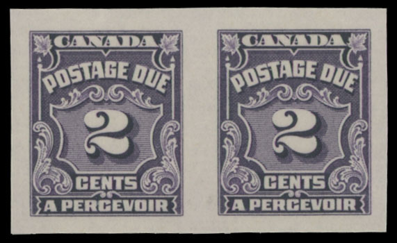 1935, Numerals, 4th issue, 2c dark violet, horizontal imperforate pair, full OG, NH, VF, C.v. $325, Unitrade C.v. CAD$450, Est. $150-$180 , Scott #J16a