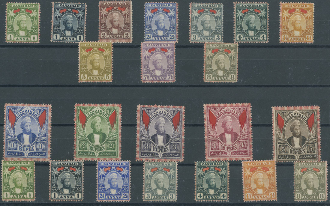 1896, Sultan Hamad bin Thuwaini, ½a-5r, complete set of 15 with watermark Rosette, in addition ½a-8a, seven re- issued stamps (1898) with watermark Multiple Rosettes, fresh unit, full OG, NH, mostly VF, C.v. $345++, SG #156/74 and 178/87, C.v. £290 as hinged, Est. $300-$350, Scott #38-52, 56/61B