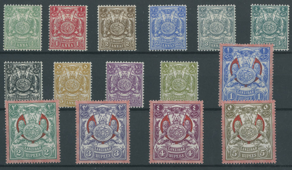 1904, Monogram of Sultan Ali bin Hamoud, ½a-5r, complete set of 15, choice centering, full OG, NH, VF, C.v. $392++, SG #210/24, C.v. £325 as hinged, Est. $400-$450 , Scott #79-93