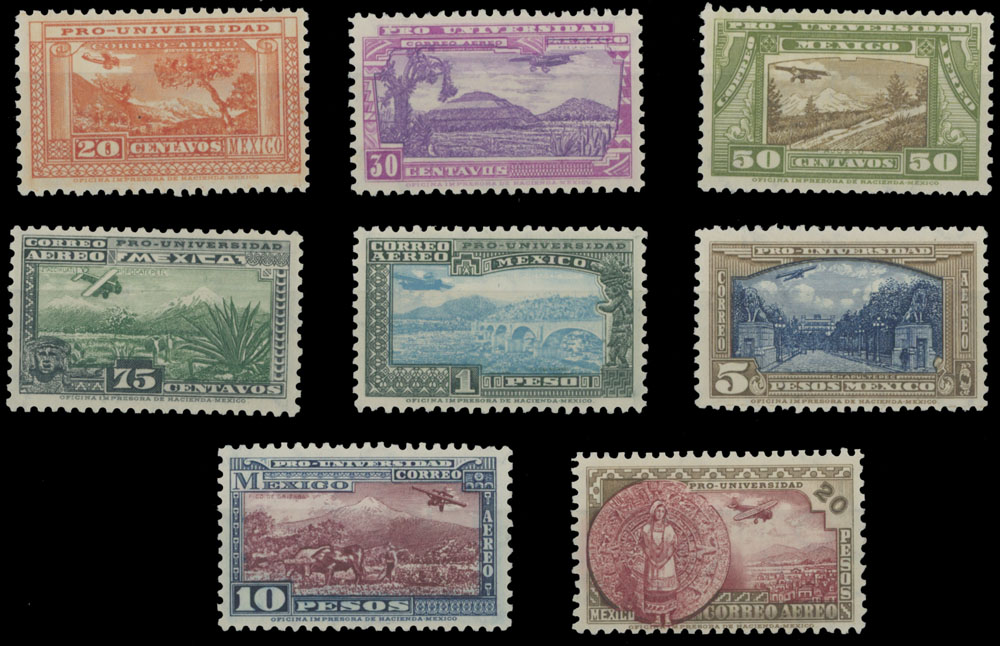 1934, National University issue, 20c-20p, complete set of eight, nicely centered and post office fresh, full OG, NH, VF, C.v. $4,750, Est. $2,000-$2,200 , Scott #C54-61