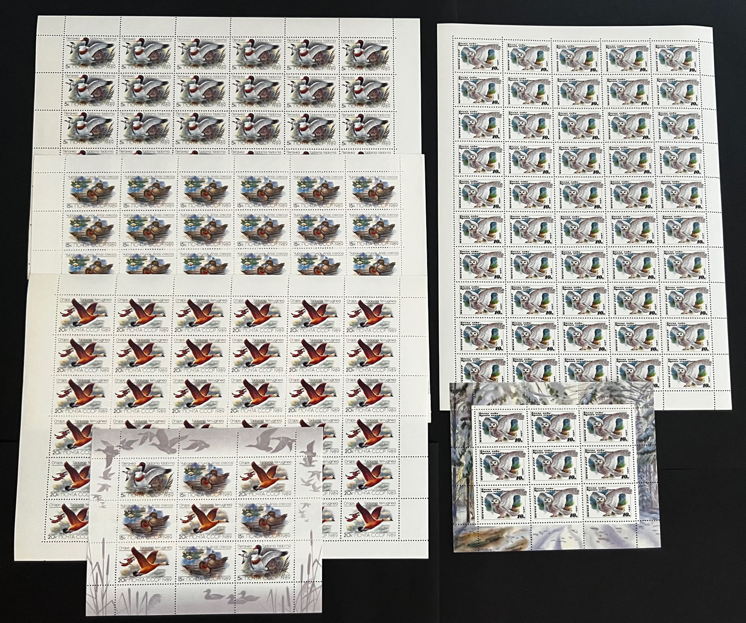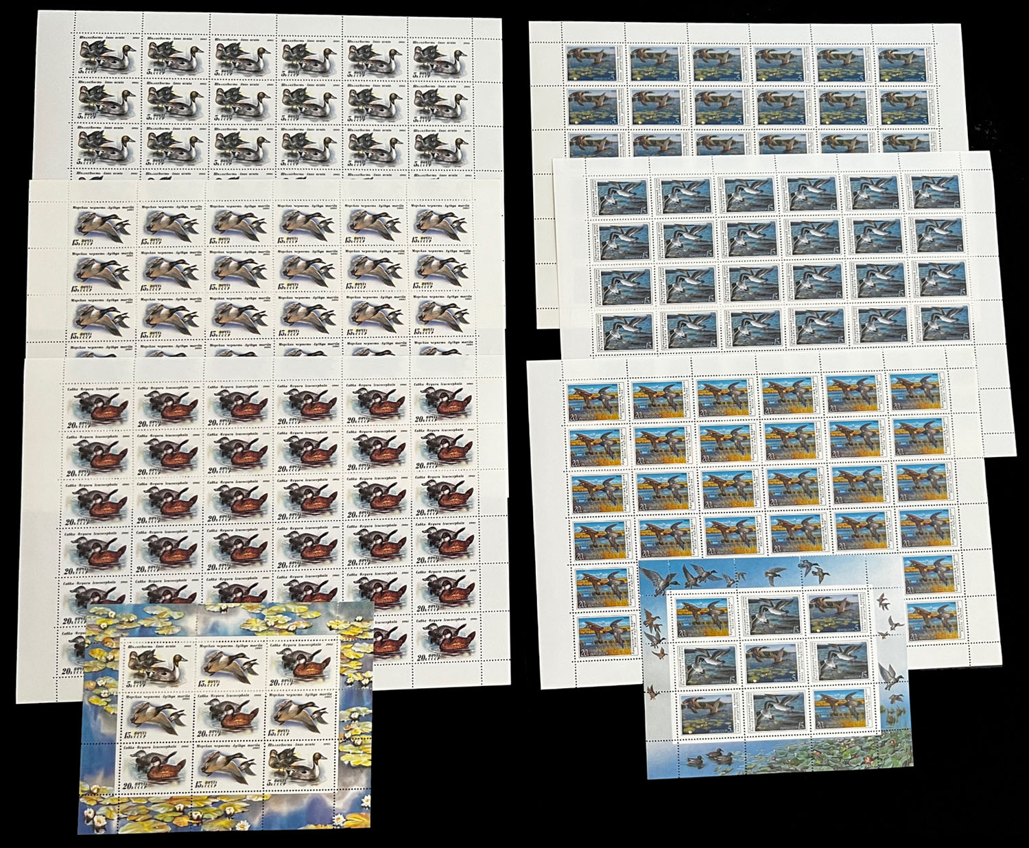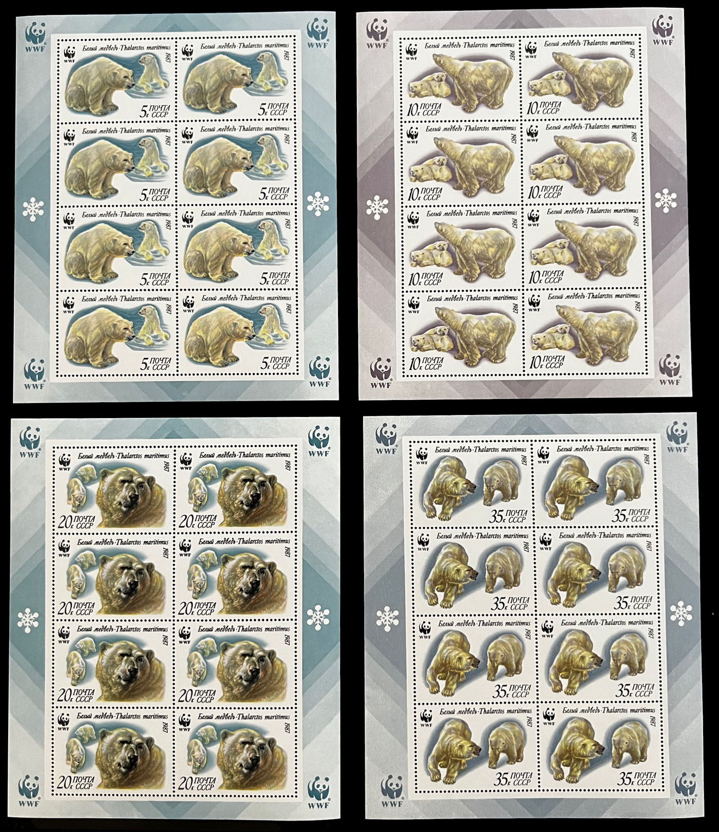 NATURE – TOPICAL ISSUES: 1984-91, 21 large sheets (1-CTO) and 21 miniature sheets, representing 11 sheets printed in limited quantity, including WWF Polar Bears, Water-Lily, Rhaponticum and Cornflower, Caracal and Marmot, Butterfly and Alpine Camp, in addition common miniature sheets – Mushrooms, Ducks and etc., post office fresh quality, full OG, NH, VF, Est. $500-$600, Scott #5254/ 6011, a, var