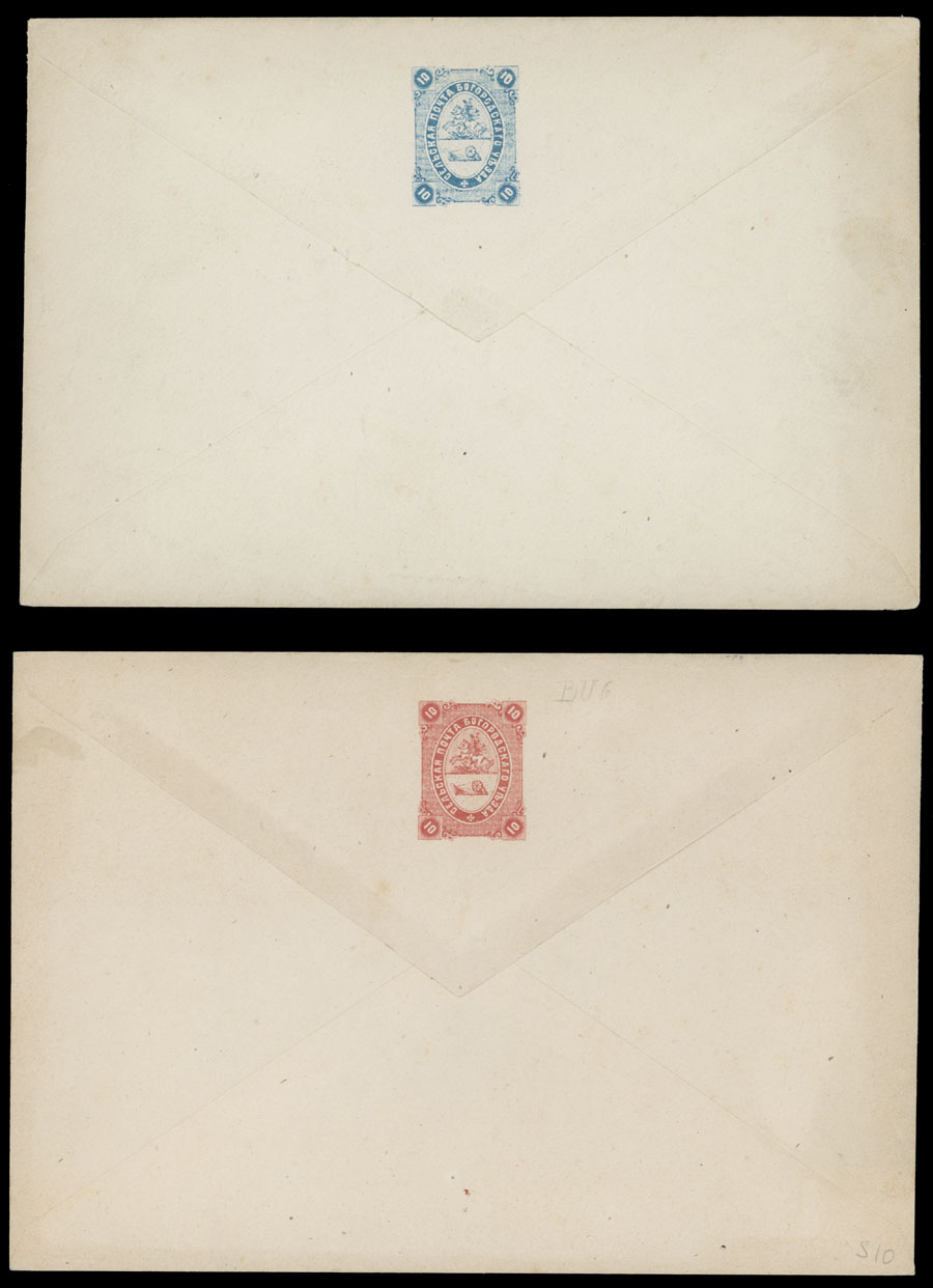 STATIONERY ENVELOPES: 1869-71, 5k and 10k blue and 10k red, four different stationery envelopes, all are unused and mostly VF, Est. $200-$250