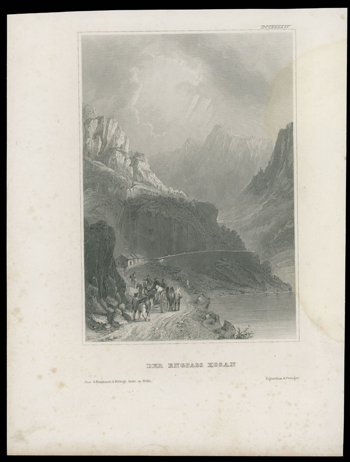 OLD ENGRAVED PRINTS OF EUROPEAN HISTORICAL PLACES: 1840- 50’s, 6 different prints, representing view of Kammer Przykos (Cave in Austria), Wharf of Marienburg (Germany), views of Suli (Northern Greece, Krakow and Wieliczka Salt Mine (Poland), Engpass Kosan (Serbia), some edge soiling did not affect the engraving, printed in Germany, VF, Est. $200-$300