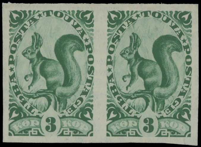 1935, Squirrel, 3k emerald green, horizontal imperforate pair, nice margins, large part of OG, VF and scarce, Est. $300-$350 , Scott #62a