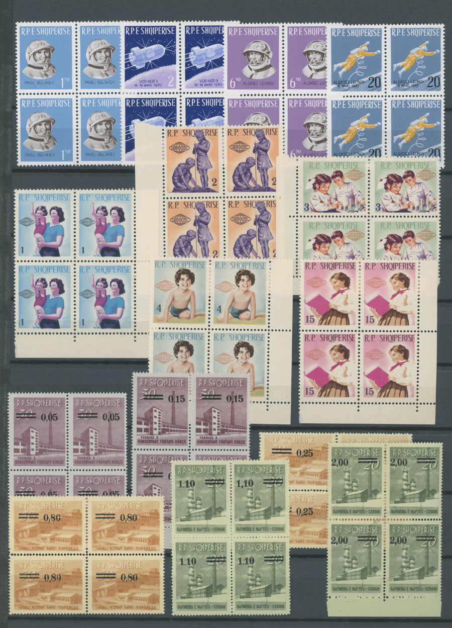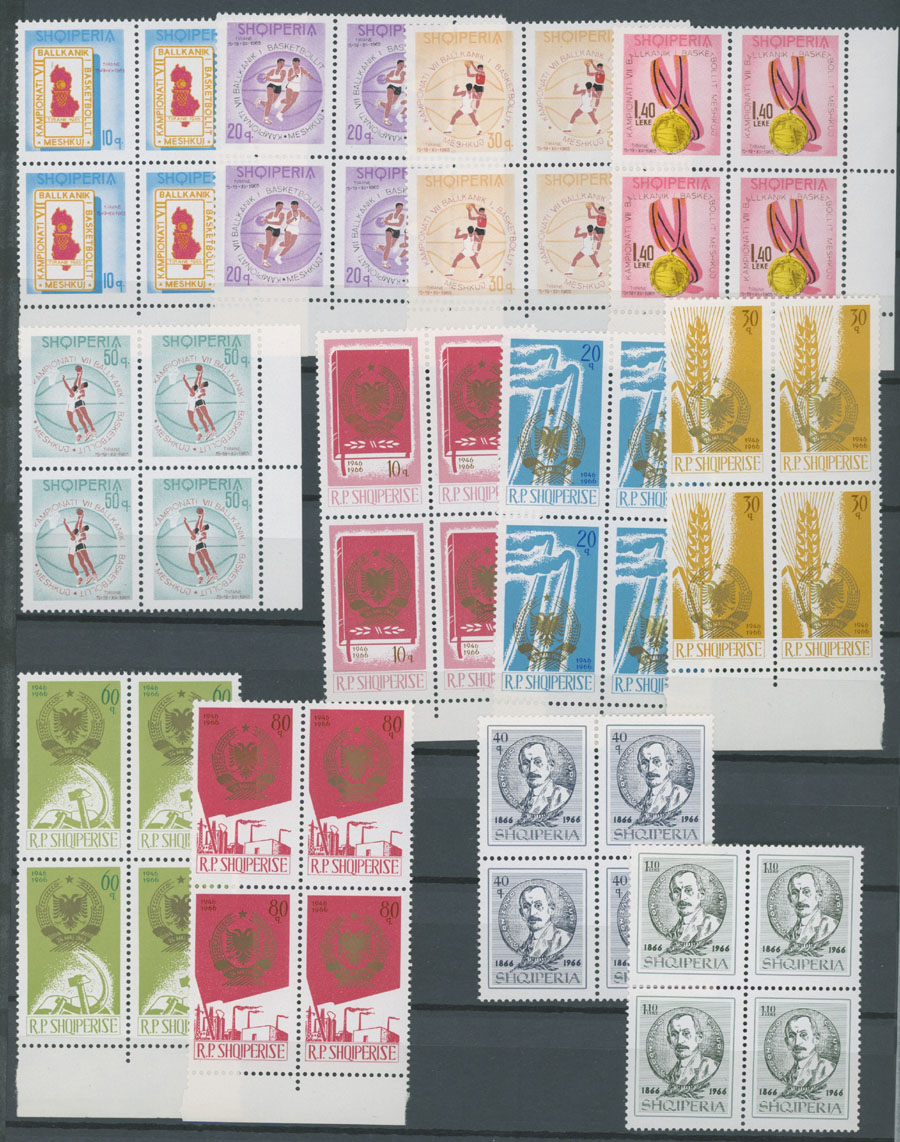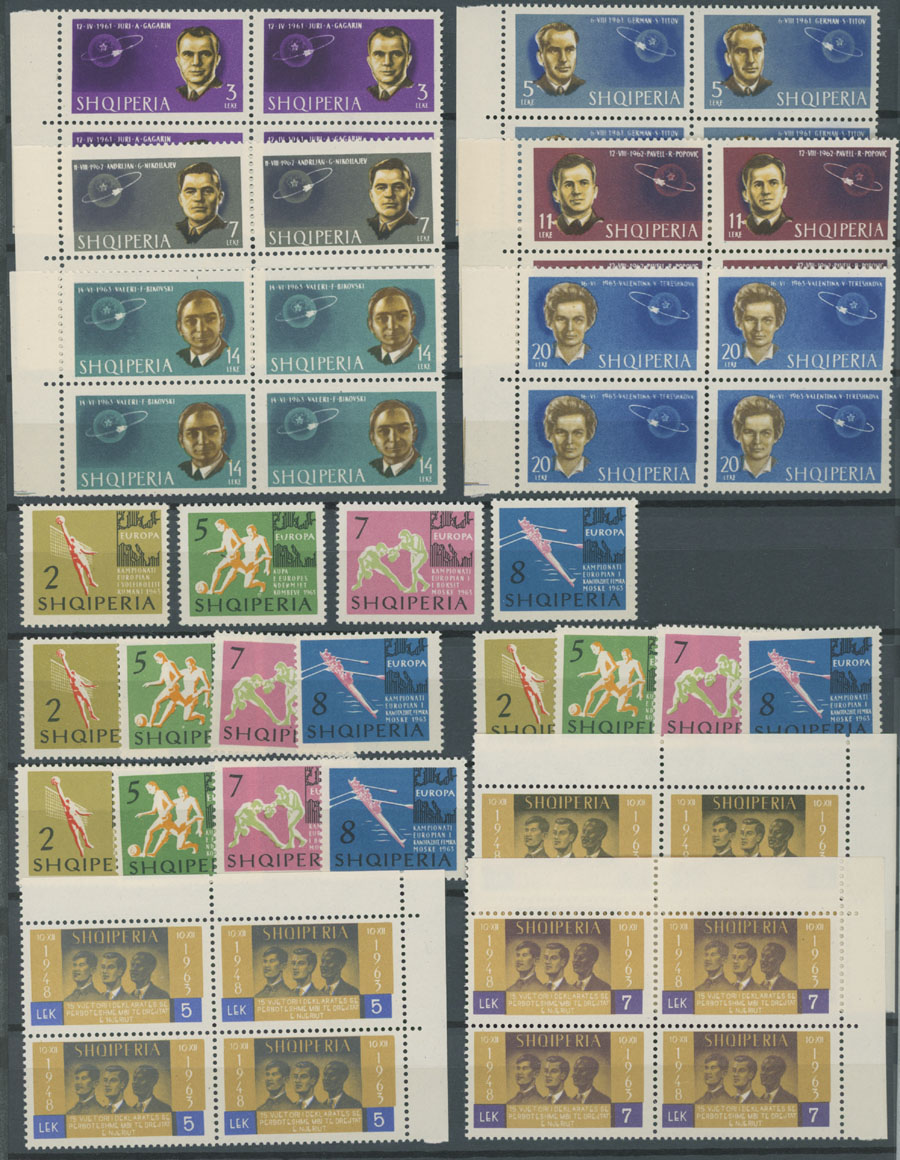 NICE MULTIPLES ACCUMULATION: 1963-66, 24 complete issues, mainly in blocks of four, plus 4 souvenir sheets of 1938 (No.289), nice topical subjects, such as Living Creatures, Space Exploration, Sports and etc., full OG, NH, VF and ready for internet sales, C.v. close to $900, Est. $250-$300, Scott #289, 680/944, C73-74