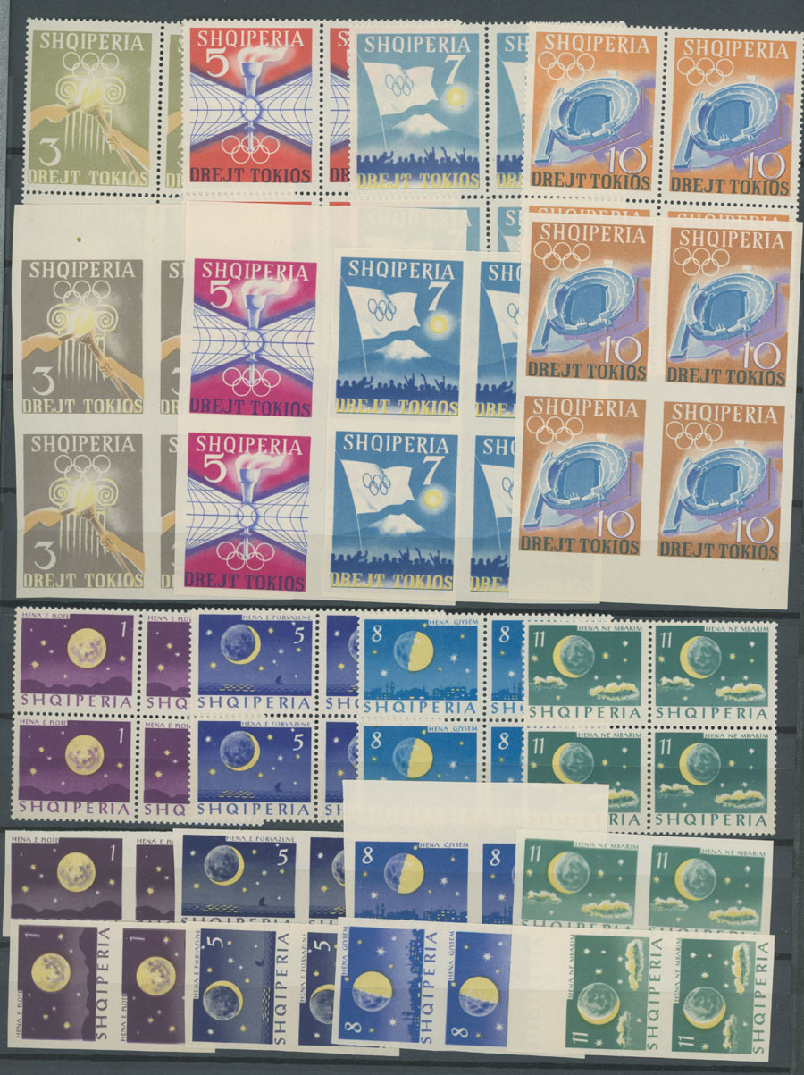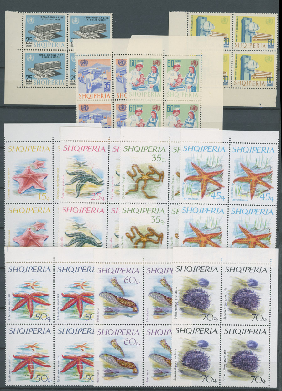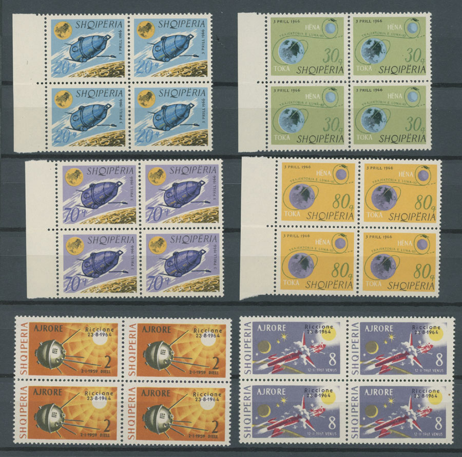 NICE MULTIPLES ACCUMULATION: 1963-66, 24 complete issues, mainly in blocks of four, plus 4 souvenir sheets of 1938 (No.289), nice topical subjects, such as Living Creatures, Space Exploration, Sports and etc., full OG, NH, VF and ready for internet sales, C.v. close to $900, Est. $250-$300, Scott #289, 680/944, C73-74