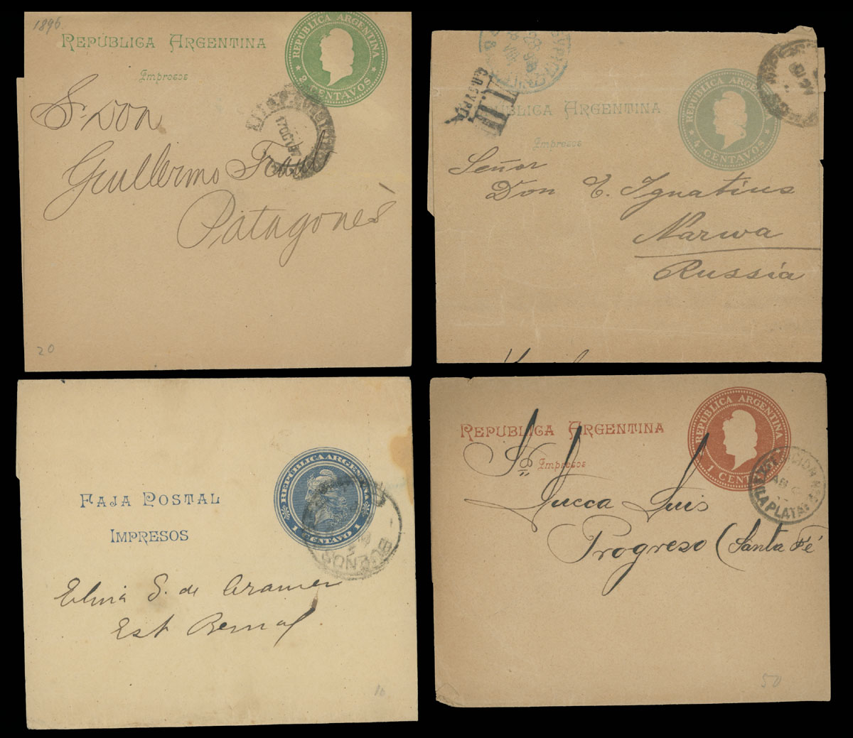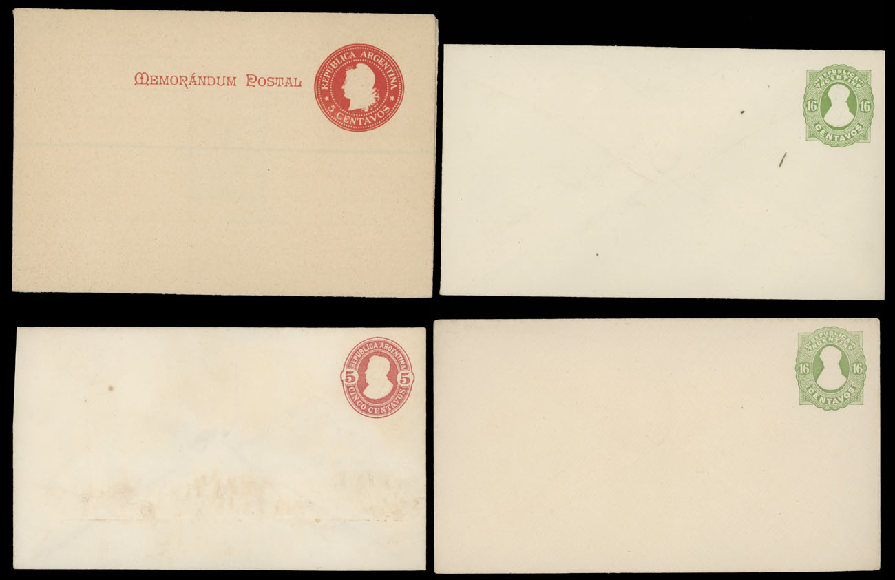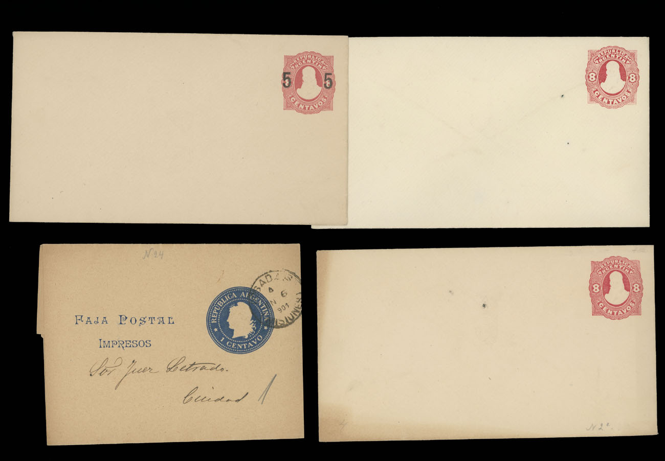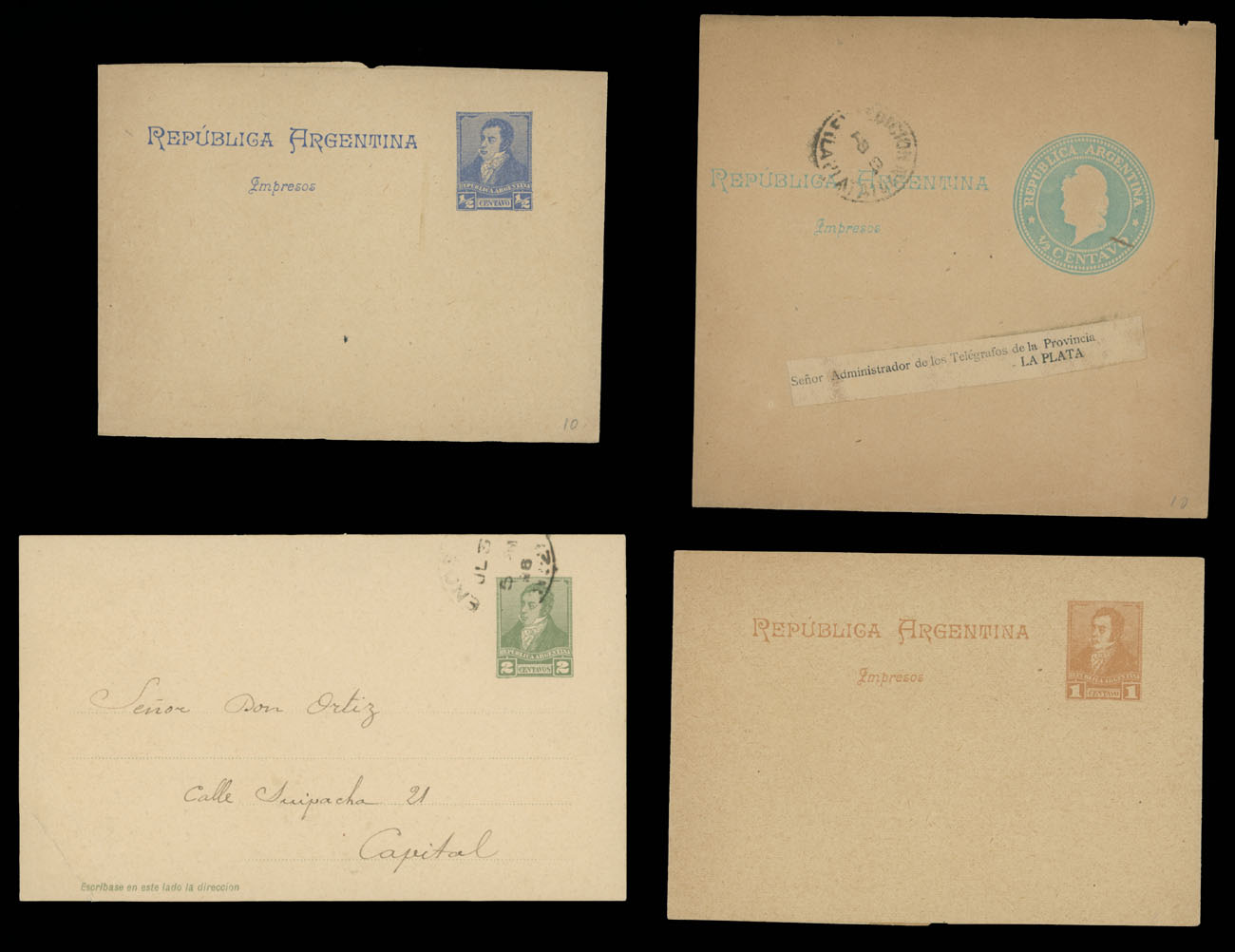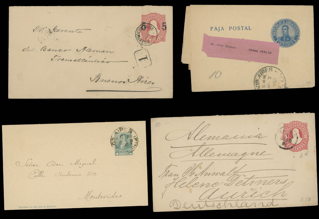 CLASSIC STATIONERY COLLECTION IN RED BROWN COVER ALBUM: 1890-1912, 164 used and unused items, including 73 wrappers (38 unused), 25 letter cards (18 unused), 38 envelopes (30 unused), 26 postcards (13 unused) and 2 unsevered reply cards, used ones are of various destinations, some better items, generally fresh quality unit, F/VF or better, Est. $300-$400