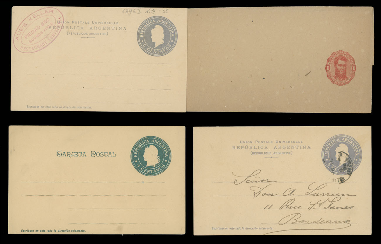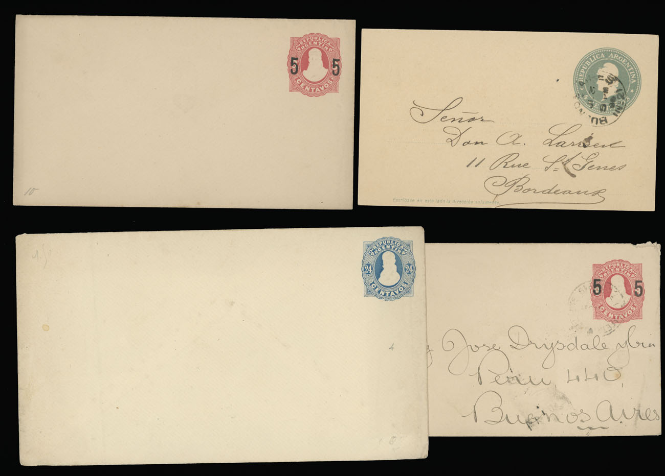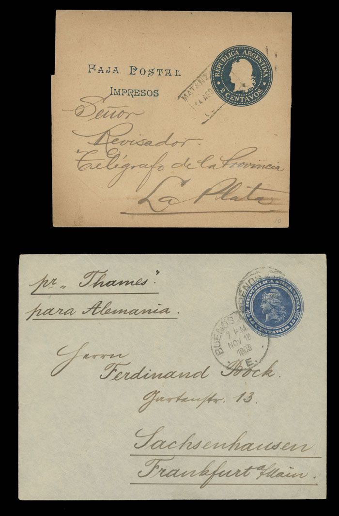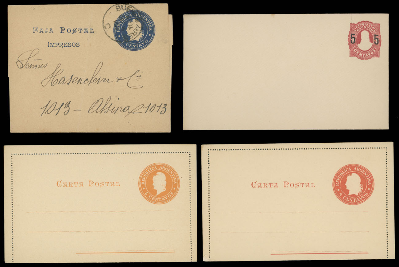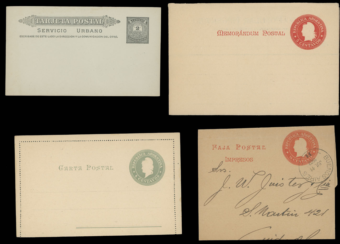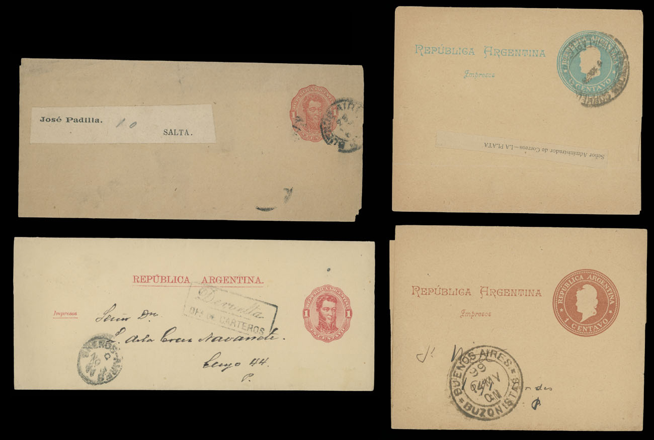CLASSIC STATIONERY COLLECTION IN RED BROWN COVER ALBUM: 1890-1912, 164 used and unused items, including 73 wrappers (38 unused), 25 letter cards (18 unused), 38 envelopes (30 unused), 26 postcards (13 unused) and 2 unsevered reply cards, used ones are of various destinations, some better items, generally fresh quality unit, F/VF or better, Est. $300-$400