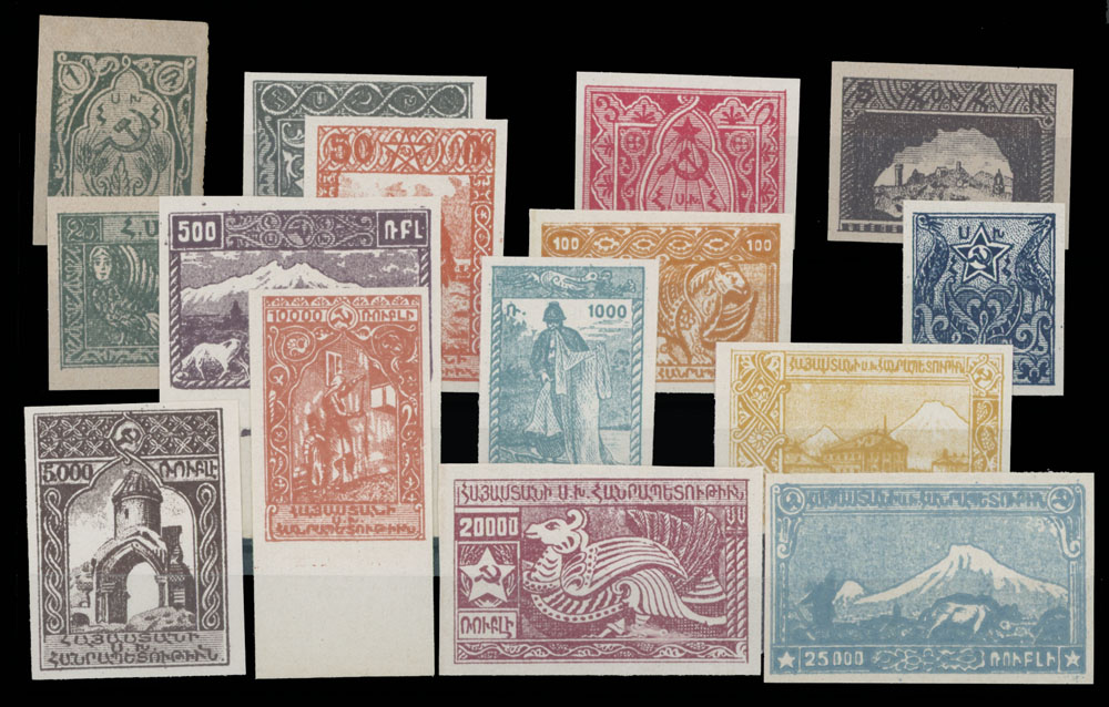 1921, First Constantinople issue, complete set of 15 imperforate plate proofs in issued colors, printed on glossy paper (proofs of 15,000r and 25,000r brown are not existing), no gum as produced, NH, VF and scarce unit, Est. $400-$500 , Scott #278/94
