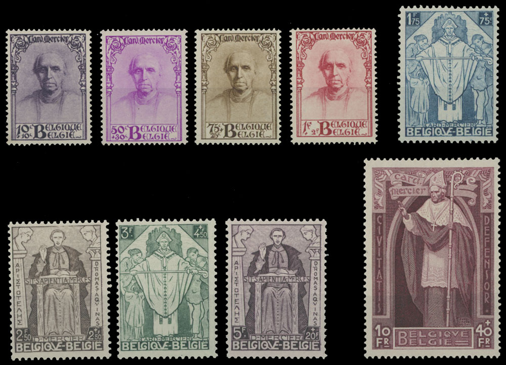 1932, Cardinal Mercier, 10c+10c – 10fr+40fr, complete set of nine, full OG, NH, VF, C.v. $1,050, Est. $400-$500 , Scott #B114-22