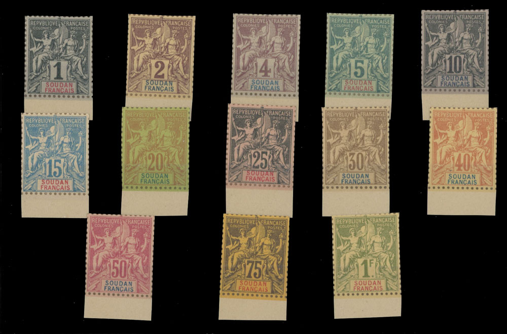 1894, Navigation and Commerce, Bristol printing proofs of 1c-1fr, complete set of 13 on thin cards with simulated perforation, bottom sheet margin singles, no gum as produced, VF and rare, Yvert #3-15, C.v. €1,250, Est. $400-$500 , Scott #45735