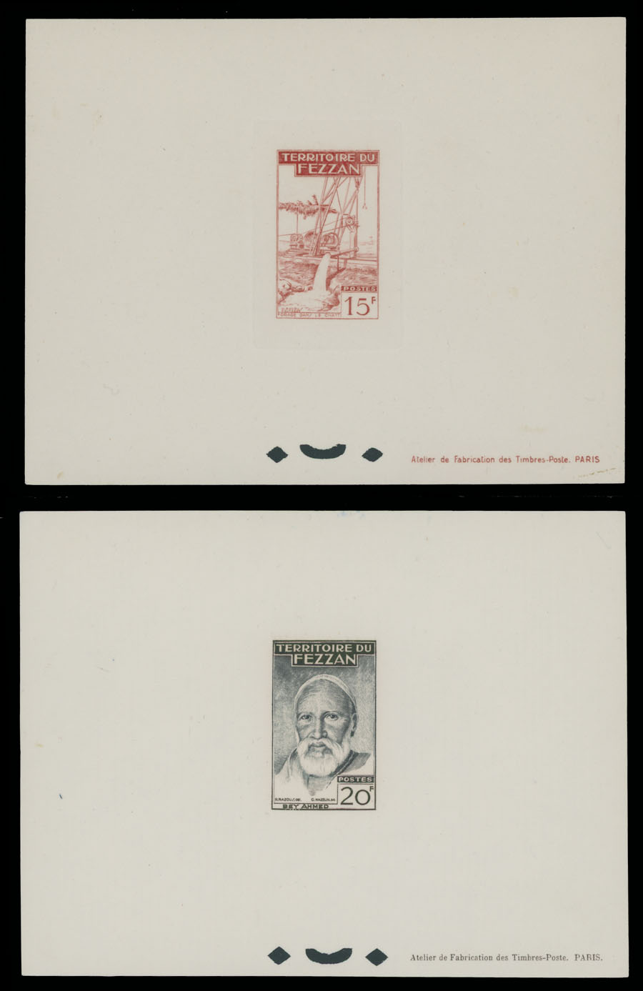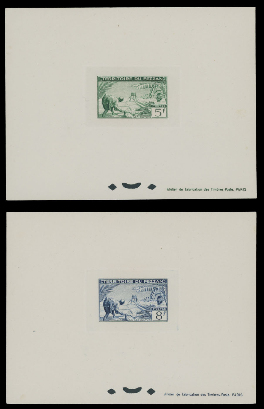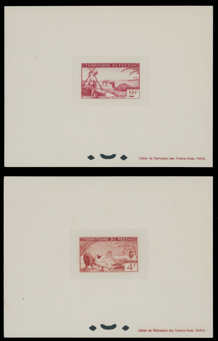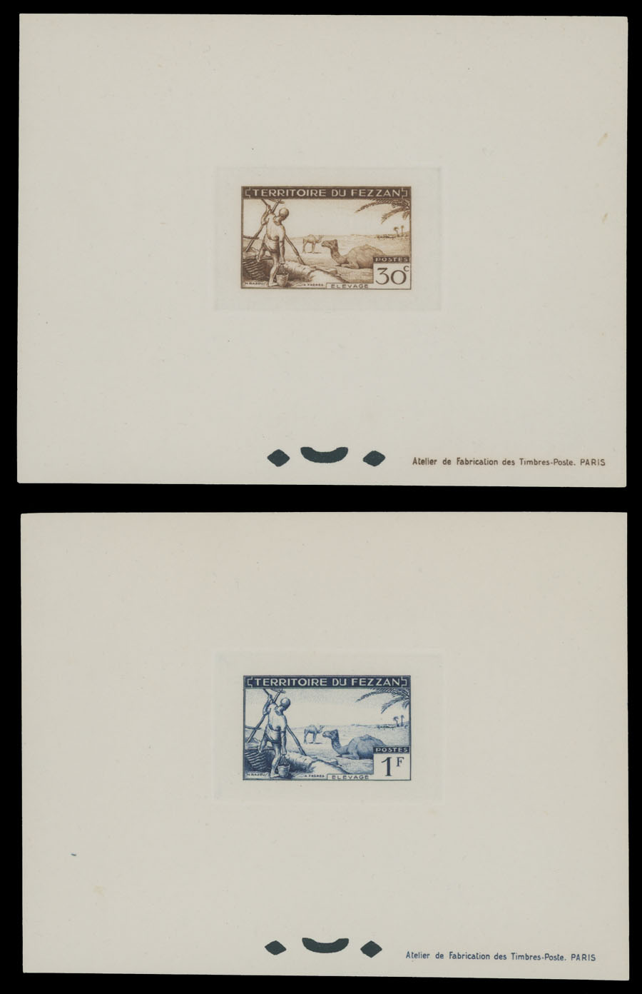 1951, Camels, Agriculture, Well Drilling and Ahmed Bay, 30c-50fr, complete set of 12 in epreuves de luxe, nine of those (30c-15fr) are sunken dies, occasional inclusions, fresh quality, no gum as produced, NH, VF, Sassone #29 -40, Est. $400-$500 , Scott #2N12-23