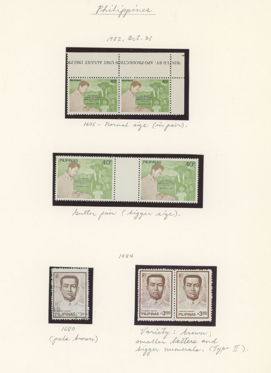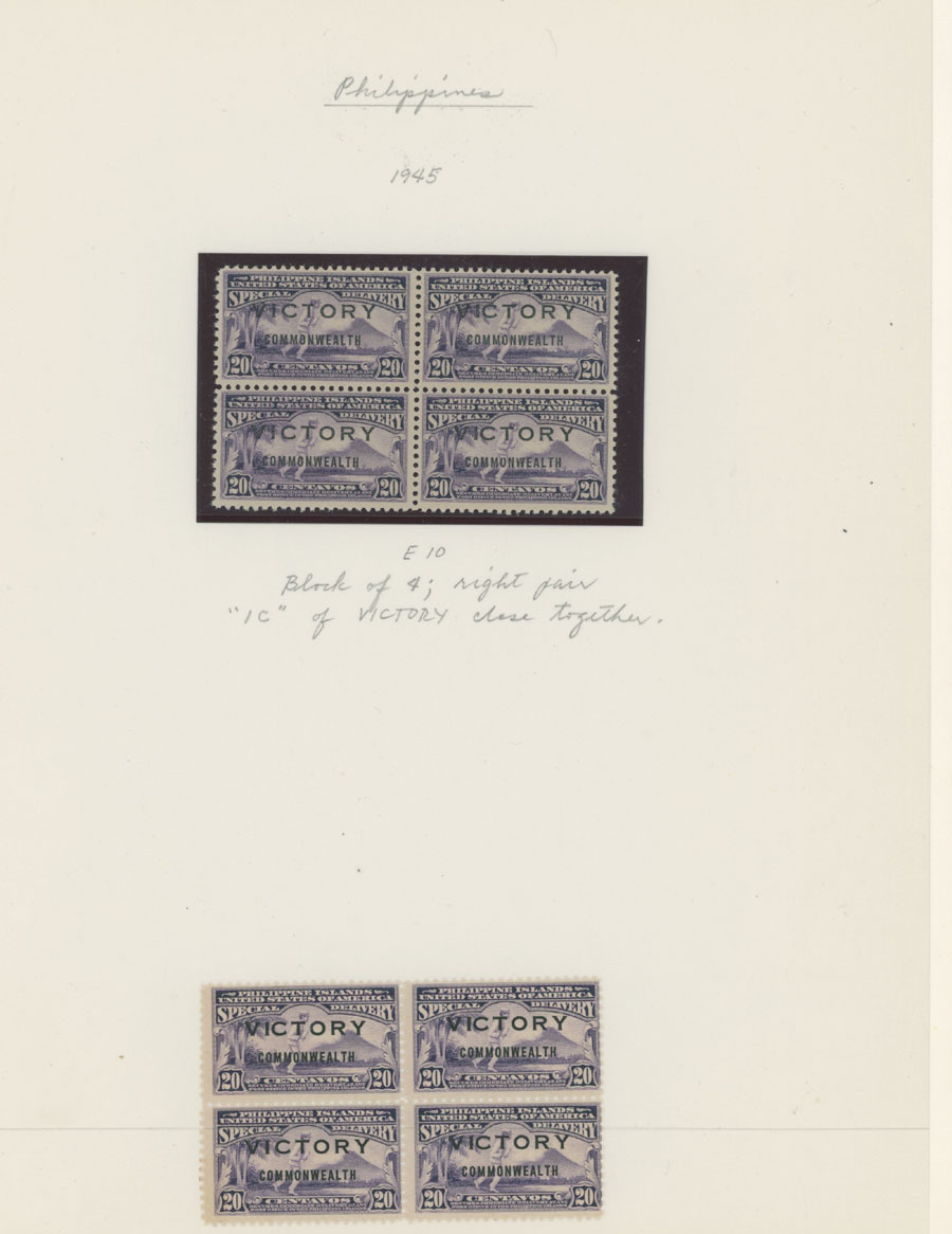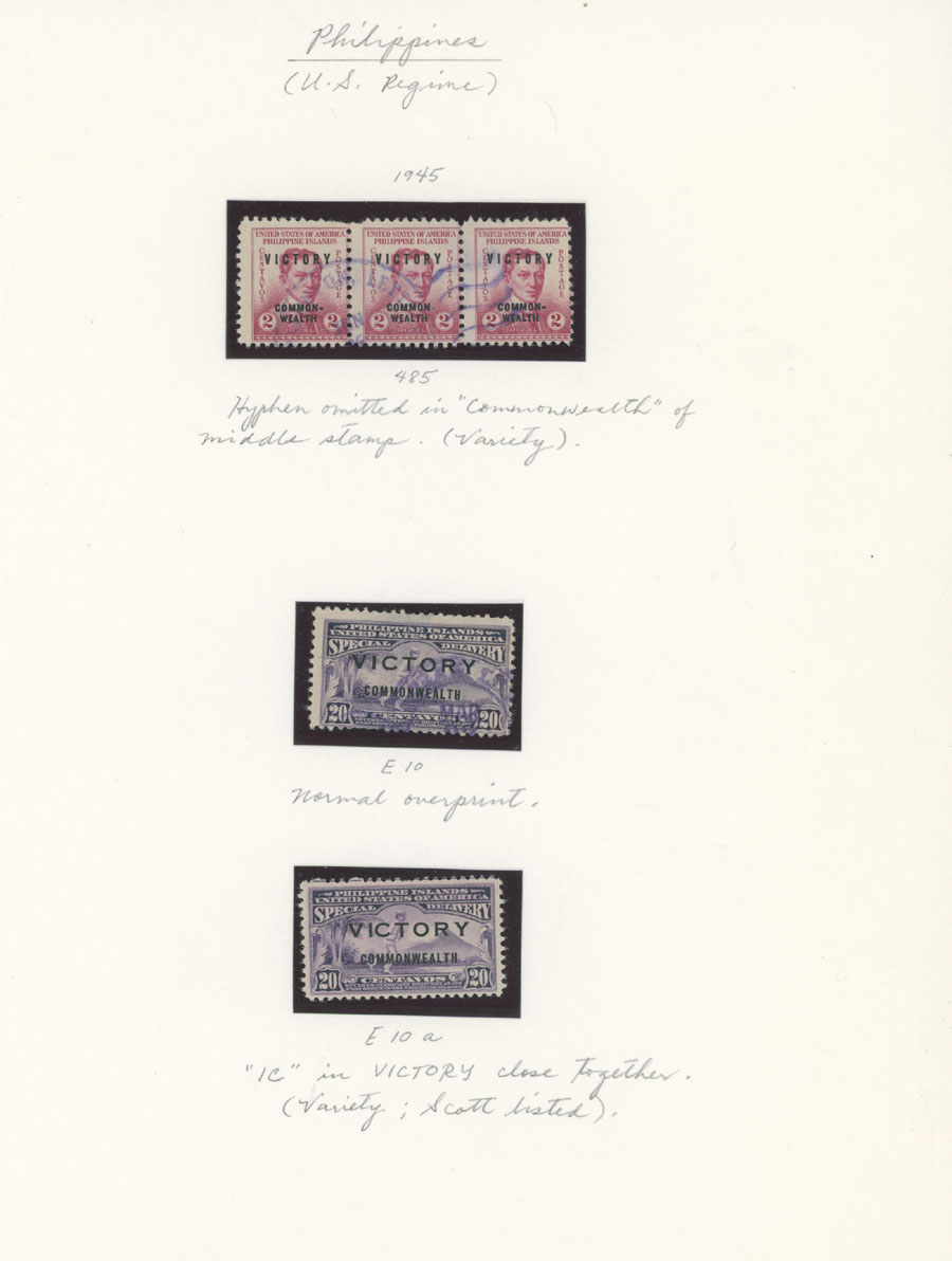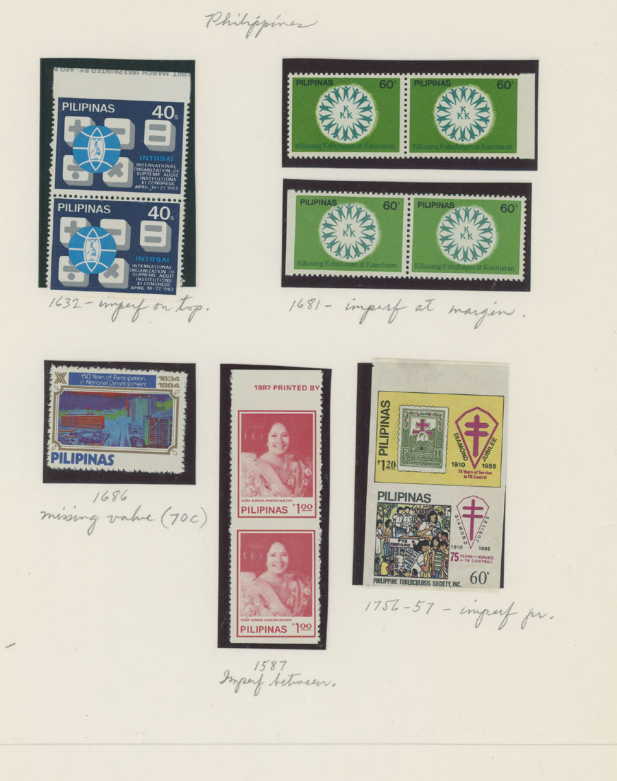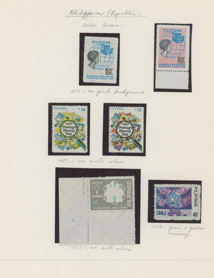 1975-85, six color omitted varieties, seven color errors, in addition VICTORY overprint varieties on four early items, nice condition, full OG, NH (strip of three used), mostly VF, Est. $150-$180 , Scott #1257/ 780, var, E10, a