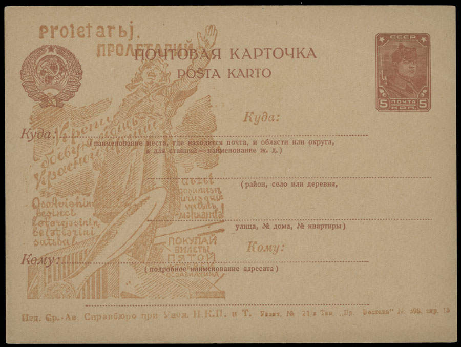 1931, Central Asia Bureau of the Ministry of Communications, brown red overprint ”Strengthening the combat readiness of the Red Army” on stationery postcard 5k brown, fresh, unused and VF, Standard Cat. #IV.6, Est. $150-$180