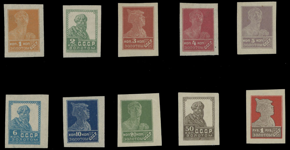 1923, definitive issue, 1k-1r, litho printing, imperforate complete set of ten, balanced to large margins, full OG, NH, VF, C.v. $236, Est. $100-$120 , Scott #250-59