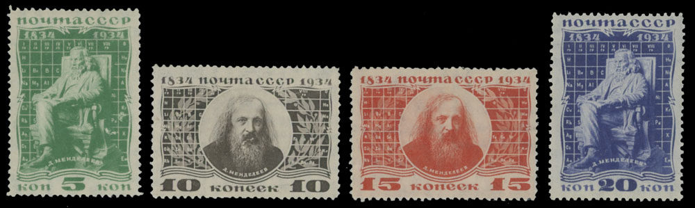 1934, Dmitry Mendeleev, Chemist, 5k-20k, complete set of two, full OG, NH, VF, C.v. $530, Est. $250-$300 , Scott #536-39