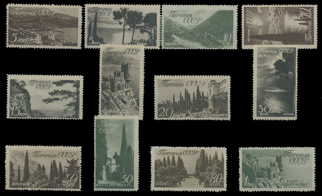 1938, Views of Crimea and Caucasus, 5k-1r, complete set of 12, fresh condition, full OG, NH, VF, C.v. $402, Est. $200-$250 , Scott #666-77