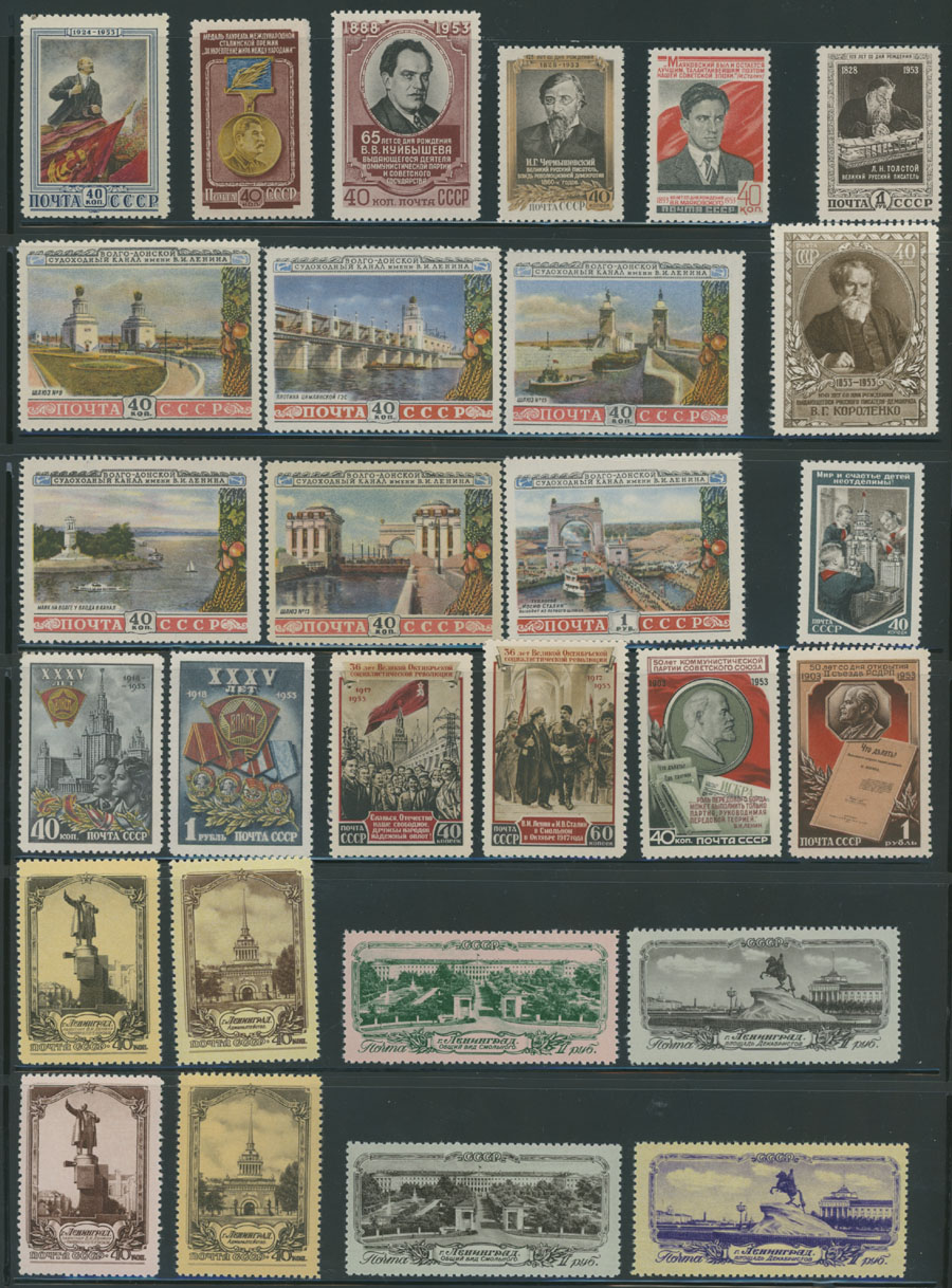 1953 Year, complete set of 28 stamps, including Volga- Don Canal and both issues of Leningrad Views, full OG, NH, mostly VF, C.v. $330, Est. $150-$180 , Scott #1661-88