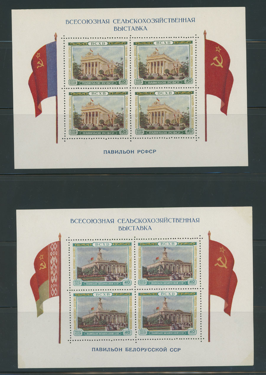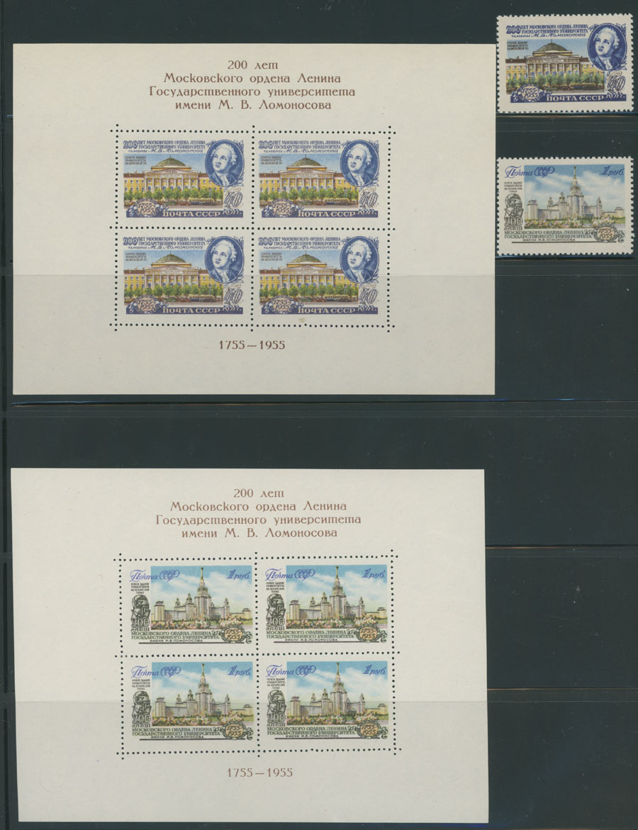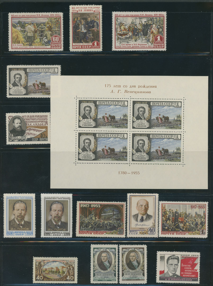 1955 Year, complete set of 49 stamps and 9 souvenir sheets, postage and air post, including North Pole Station sheet issued in 1958, all with full OG, NH, mostly VF, C.v. $370, Est. $200-$250 , Scott #1746-88, C91-97