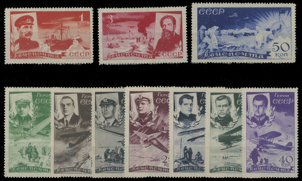 1935, Chelyuskin Rescue, 1k-50k, complete set of ten, full OG, LH or hinged, mostly VF, C.v. $1,032, Est. $500-$600 , Scott #C58-67