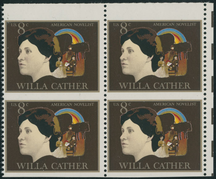 1973, American Arts issue, Willa Carter, 8c multicolored, top right corner sheet margin block of four, imperforate horizontally, full OG, NH, VF, C.v. $350 as two pairs, Est. $150-$200 , Scott #1487a