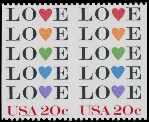 1984, Love, 20c multicolored, horizontal pair imperforate vertically, full OG, NH, VF, C.v. $125, Est. $75-$90 , Scott #2072a