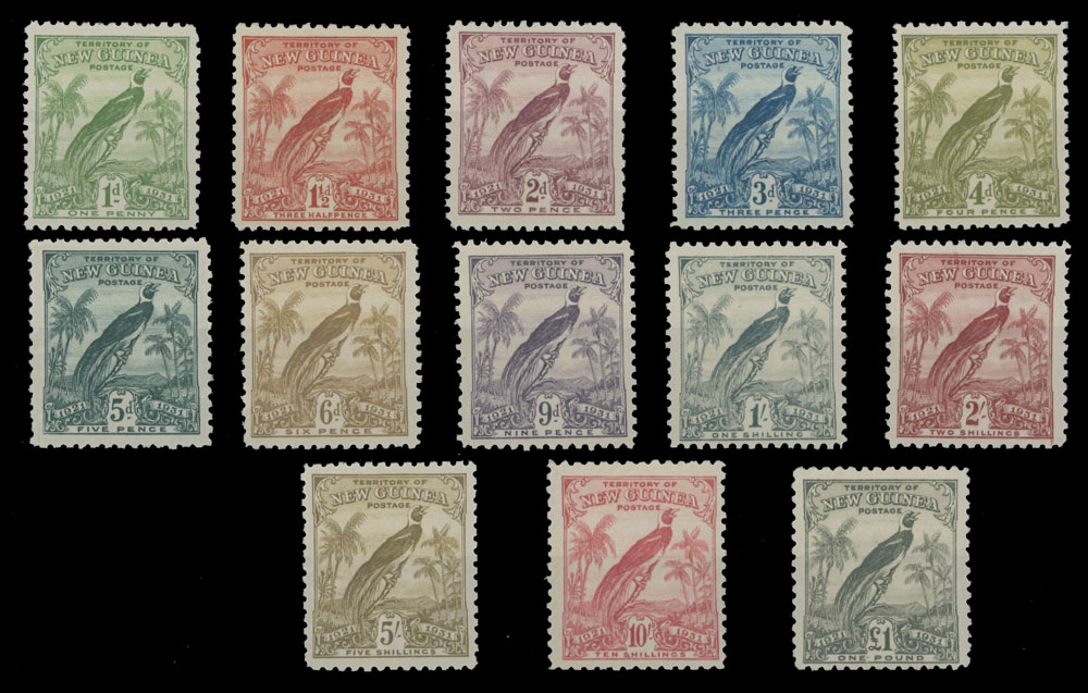 1931, 10th Anniversary of Australian Administration, Bird of Paradise with date scroll, 1p-£1, complete set of 13, full OG, NH, mostly VF, C.v. $492, SG #150/162, C.v. £425, both values are for hinged sets, Est. $600-$700 , Scott #18-30