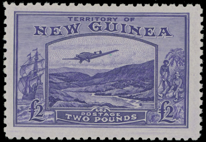 1935, Airplane over Bulolo Goldfield, £2 violet, nicely centered and very fresh, full OG, NH, VF, C.v. $350, SG #204, C.v. £350, both values as hinged, Est. $400-$500 , Scott #C44