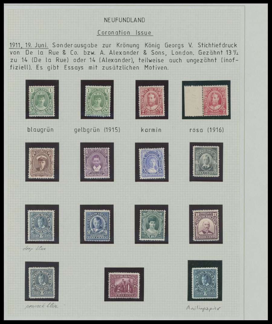 1911, 1c-15c, complete set of 15, including shades of 1c, 2c and two of 8c (deep blue and peacock blue), all with full/large part of OG, LH or hinged, overall VF, C.v. $550, Unitrade C.v. CAD$800, Est. $150-$200 , Scott #104-14, 104a, 105b, 110a
