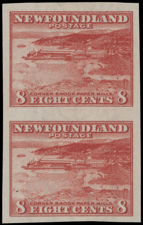 1932, Additional values, Corner Brook Paper Mill, 8c orange red, vertical imperforate pair, full OG, NH, VF, Unitrade C.v. CAD$300, Est. $120-$150 , Scott #209a