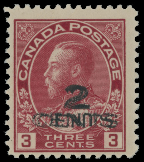 1926, double two-line surcharge 2 CENTS on 3c carmine, full OG, NH, fine, Unitrade C.v. CAD$400, Est. $150-$180 , Scott #140a