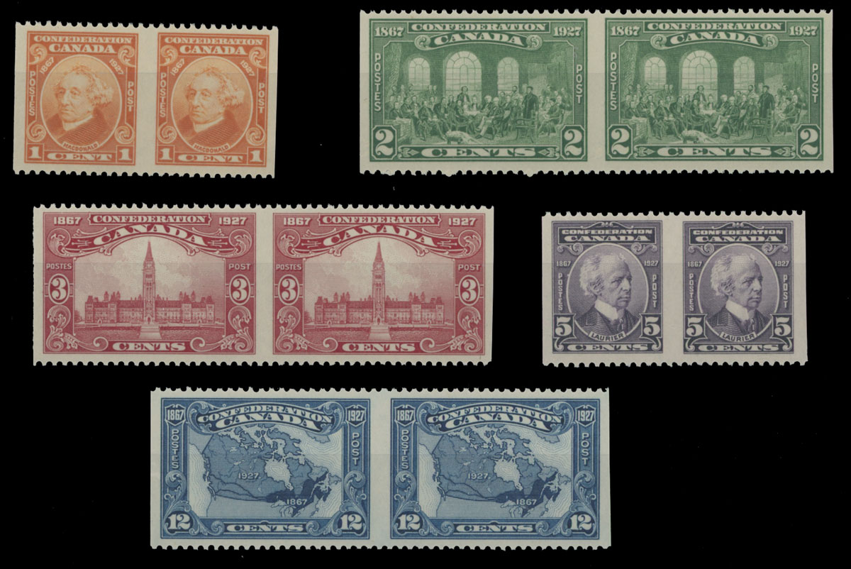 1927, 1c-12c, complete set of five in horizontal pairs imperforate vertically, perfect quality, full OG, NH, VF, Unitrade C.v. CAD$1,200, Est. $300-$400 , Scott #141b-45b