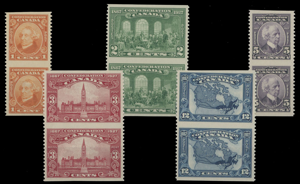 1927, 1c-12c, complete set of five in vertical pairs imperforate horizontally, excellent condition, full OG, NH, VF, Unitrade C.v. CAD$1,200, Est. $300-$400 , Scott #141c-45c