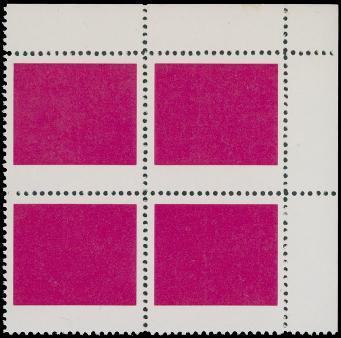 1971, Christmas, Snowflakes, (10c) carmine, silver color omitted, top right corner sheet margin block of four, full OG, NH, VF, this error is not listed in Scott or Unitrade, Est. $200-$300 , Scott #556 var