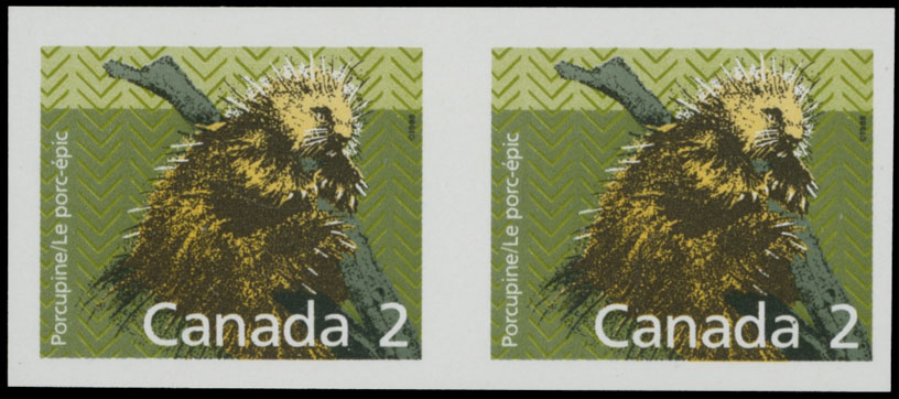 1991, Porcupine, 2c multicolored, horizontal imperforate pair printed on coated paper, full OG, NH, VF, C.v. $700, Unitrade C.v. CAD$1,000, Est. $300-$400 , Scott #1156a