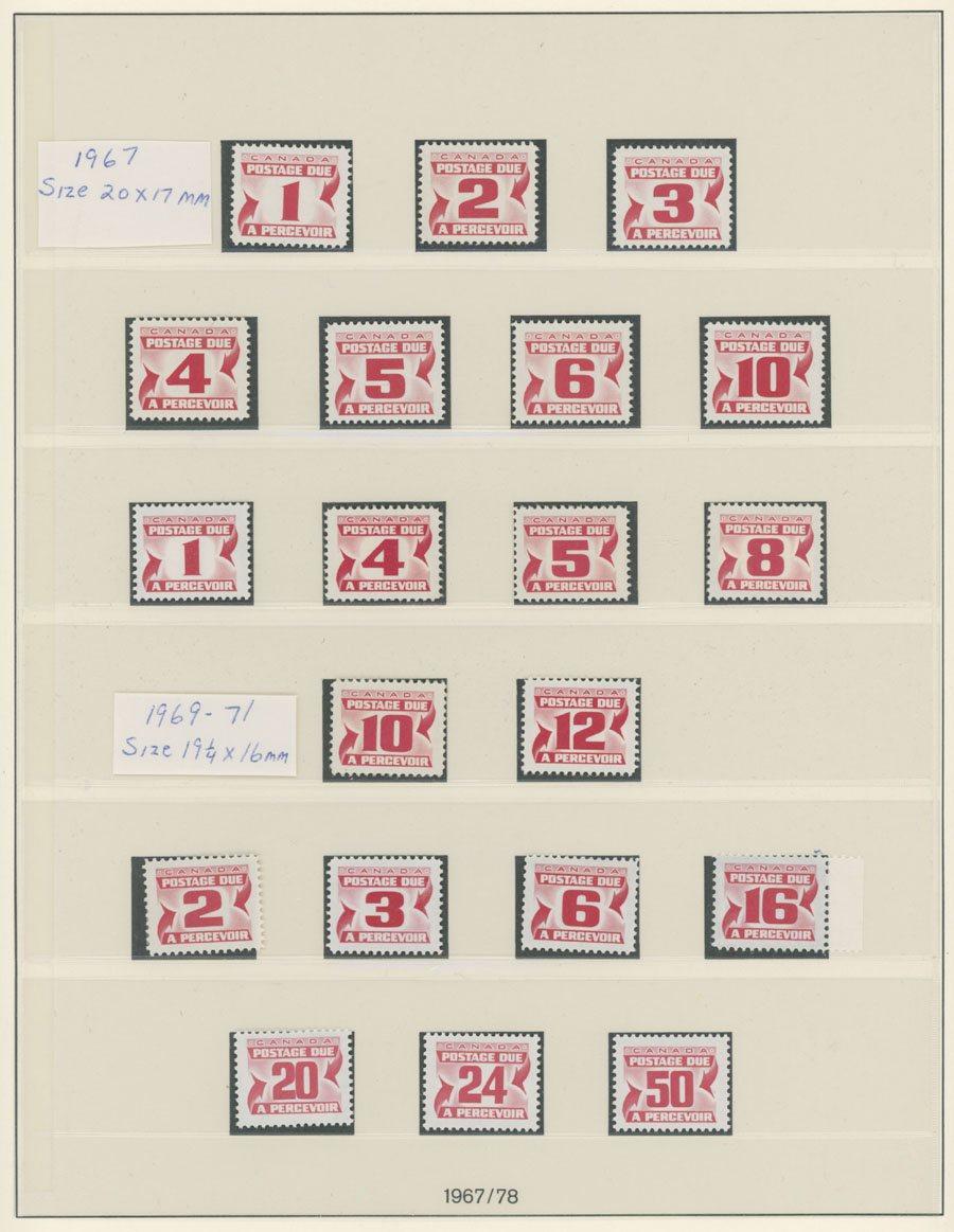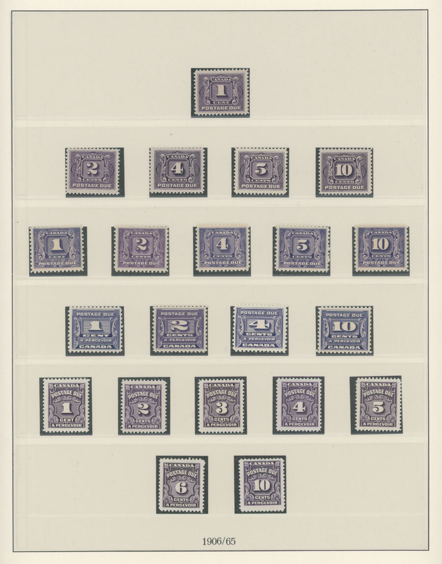 COLLECTION ON HINGELESS PAGES: 1906-78, 41 mint stamps, including 21 values of 1st, 2nd, 3rd and 4th issues and 20 stamps of ”Red Dues” with the first set of 7 (1967) and then one of each for issues of 1969-78, full OG, NH, VF, Unitrade C.v. is about CAD $1,500, Est. $300-$400, Scott #J1-40