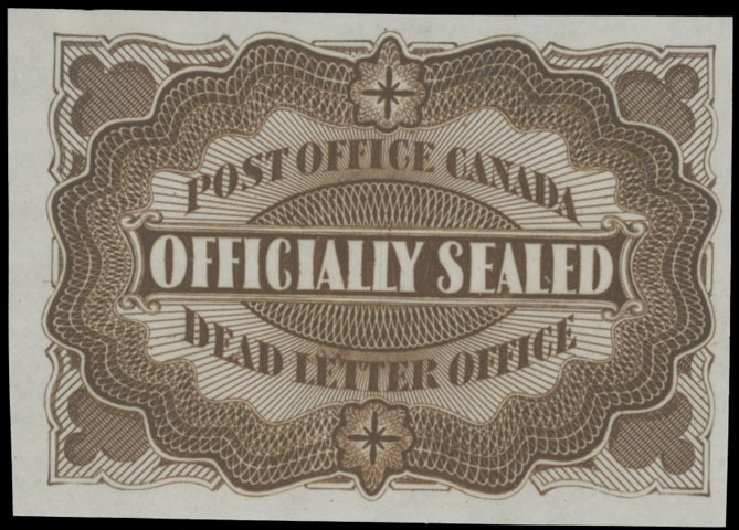1879, ”Dead Letter Office”, imperforate plate proof in brown, printed on India paper and mounted on card, fresh and VF, Unitrade C.v. CAD $800, Est. $300-$400 , Scott #OX1